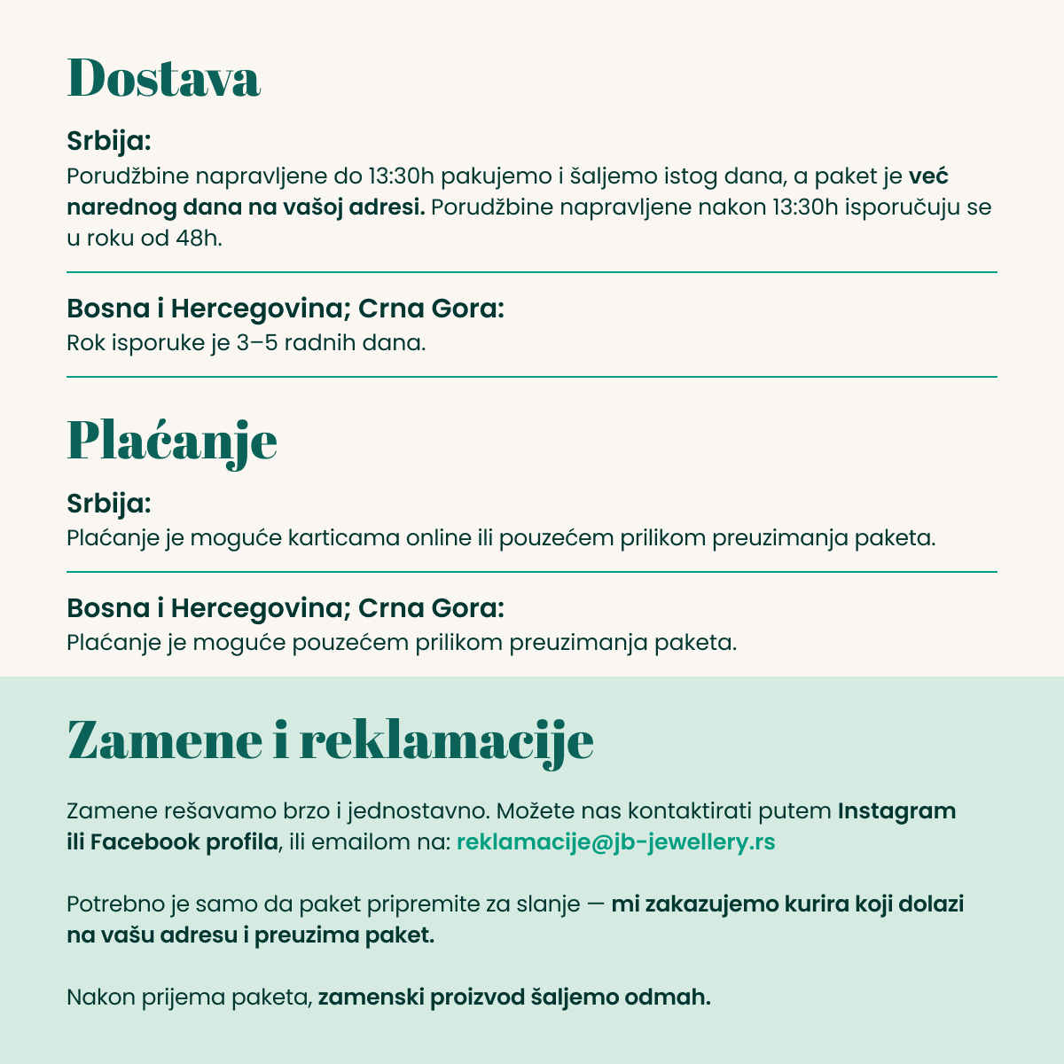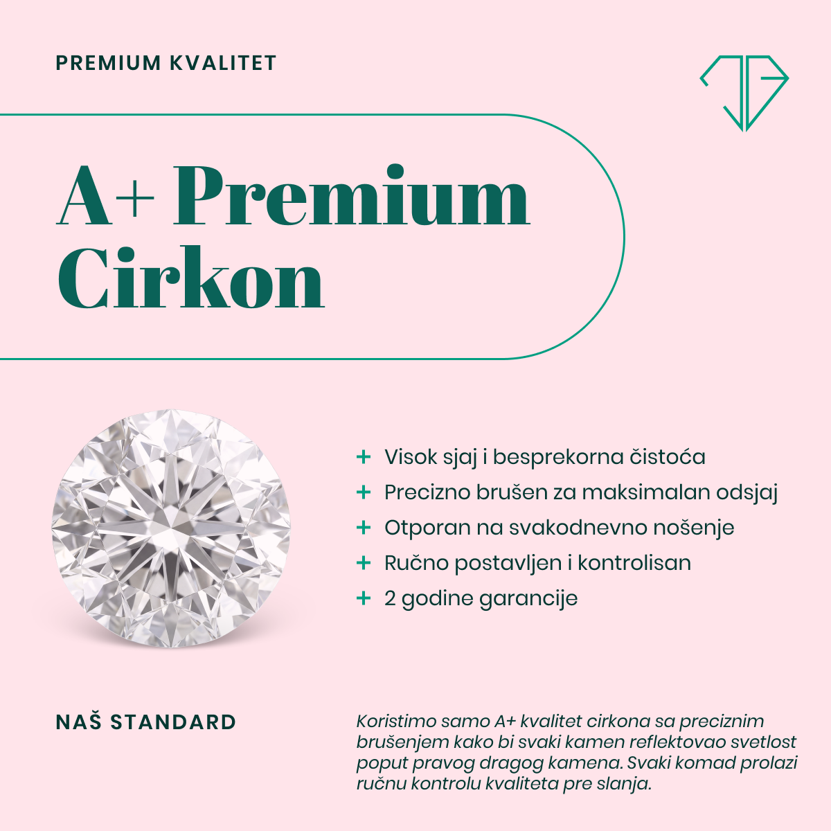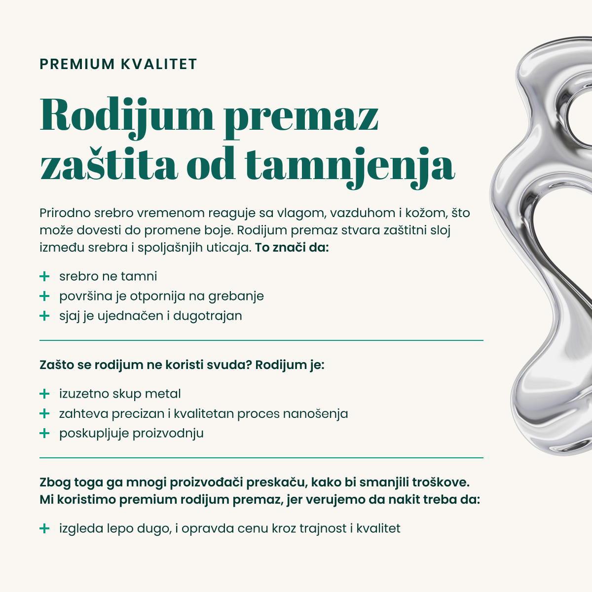 Naš nakit je izrađen od 925 srebra (sterling srebro), što garantuje visok kvalitet i dugotrajnost.